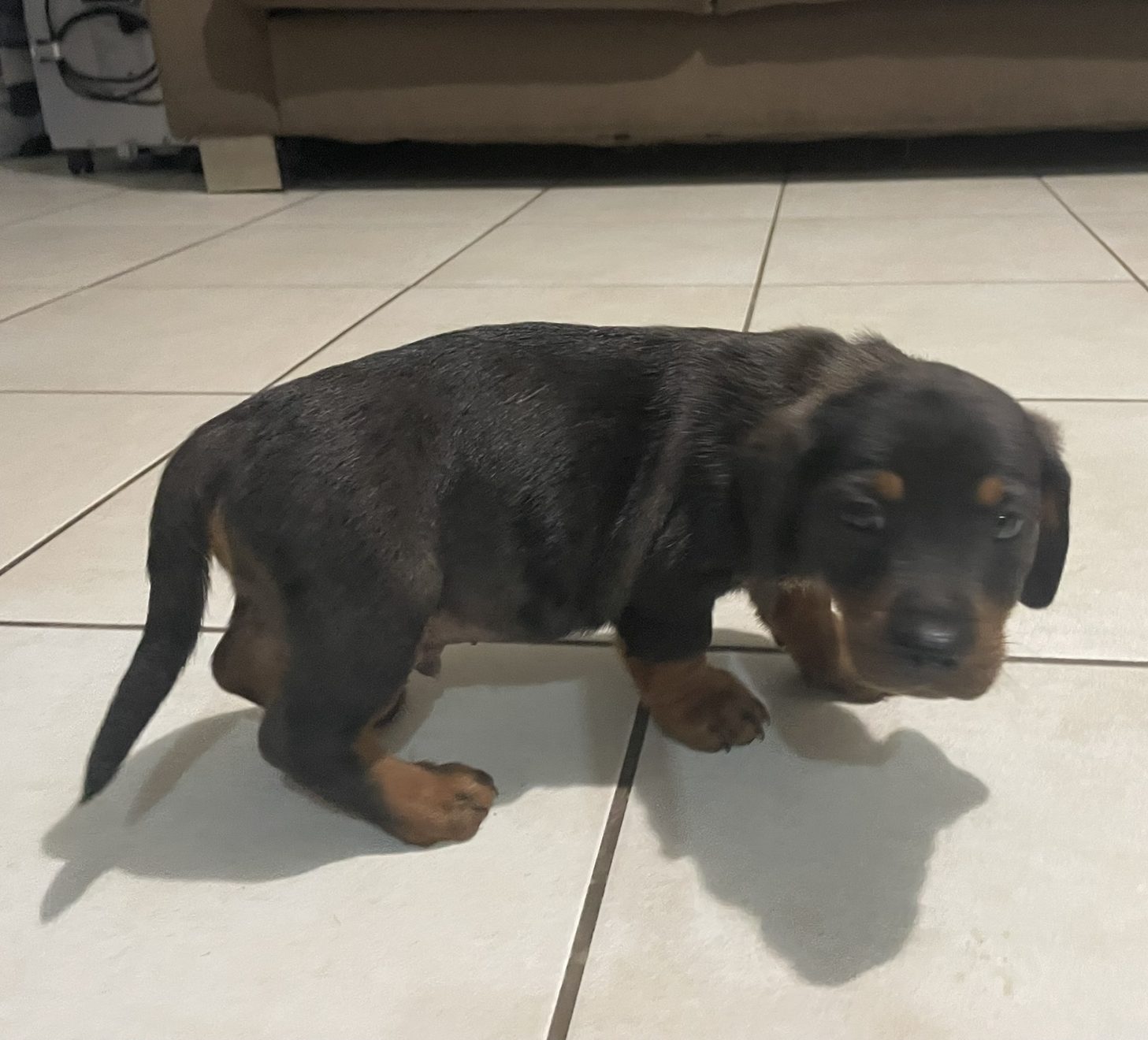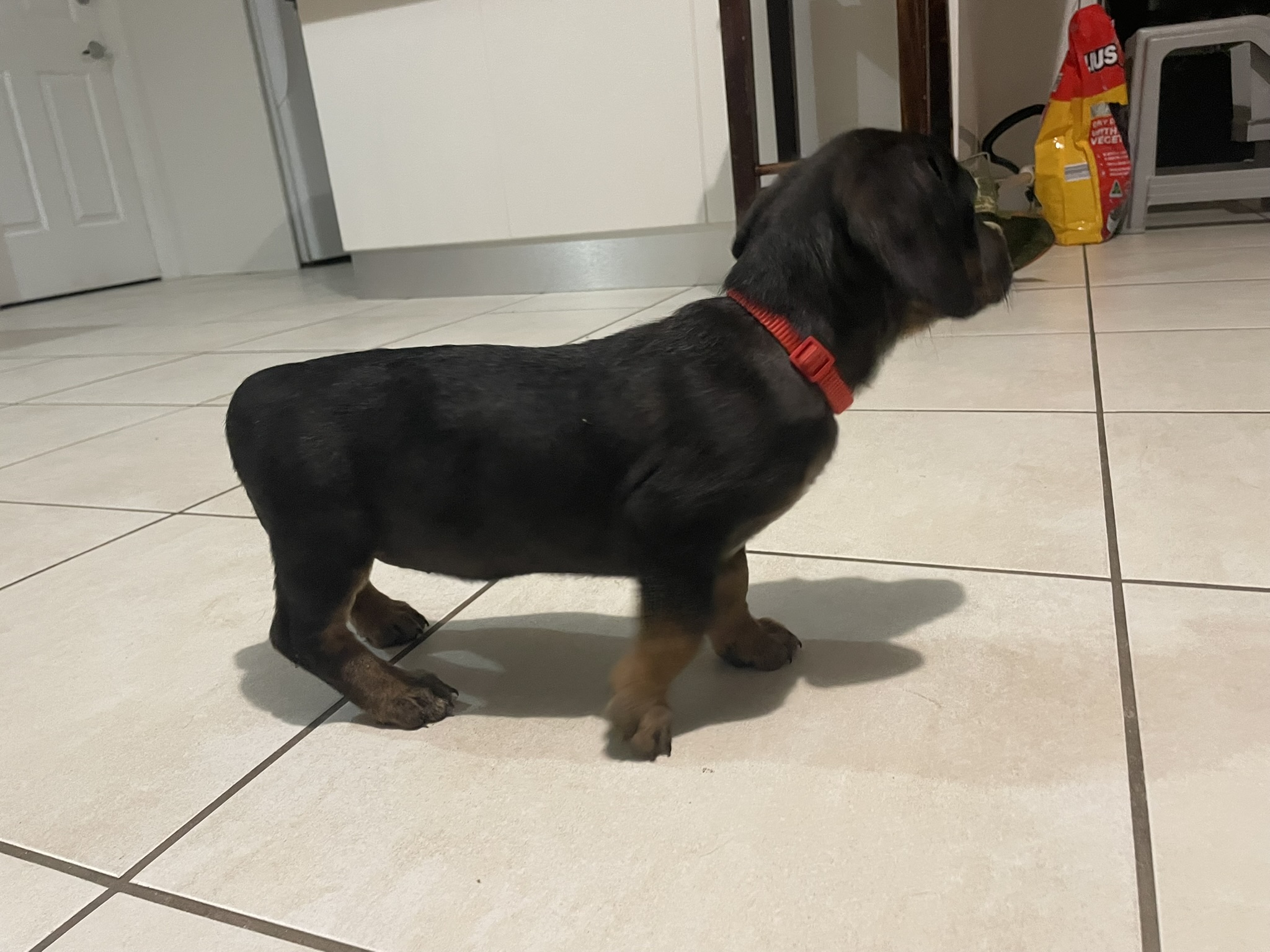 Our Dachshund × Rottweiler mix pups are very rare, friendly, loyal, and full of character. Eleven unique personalities waiting to meet their forever families.