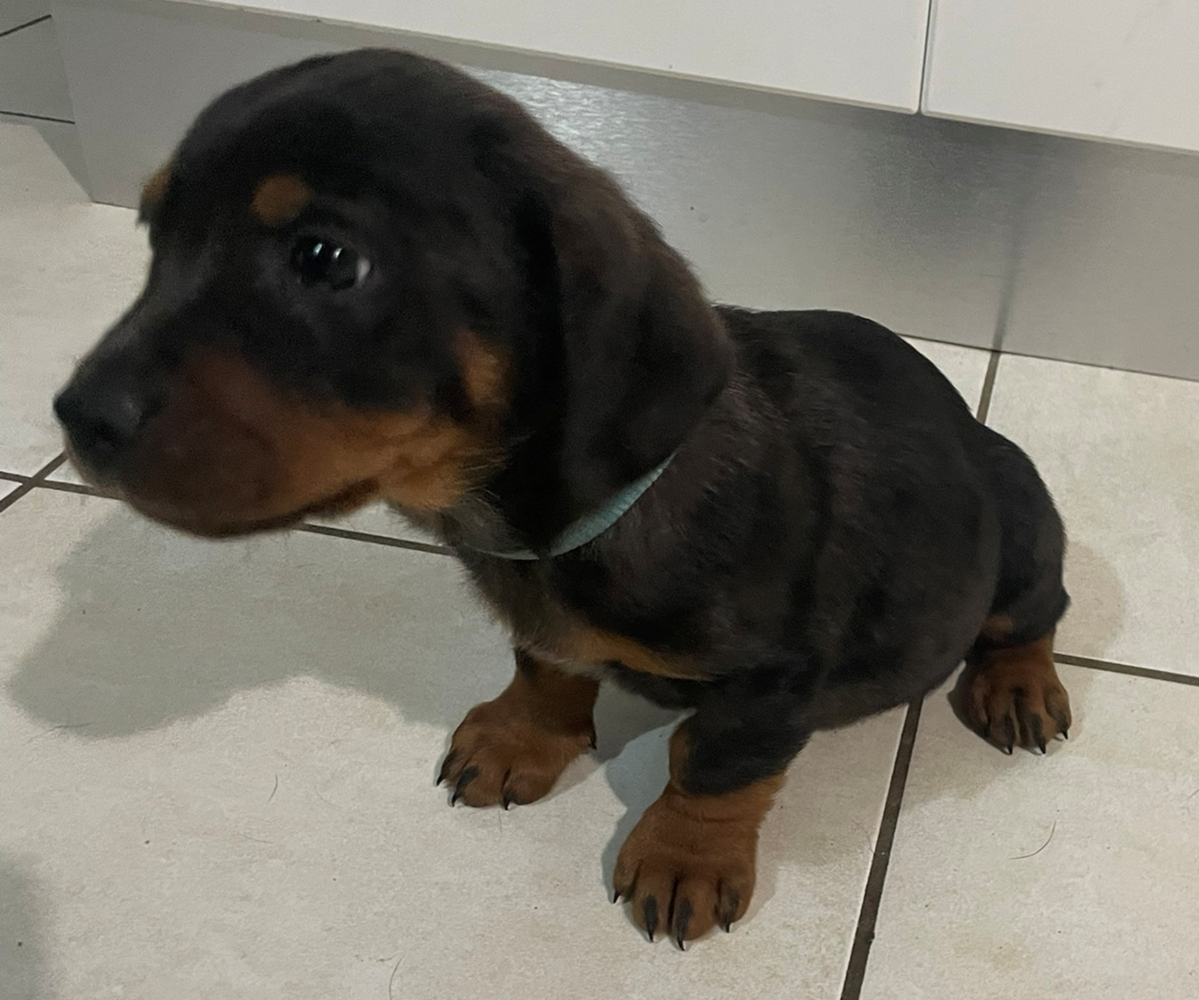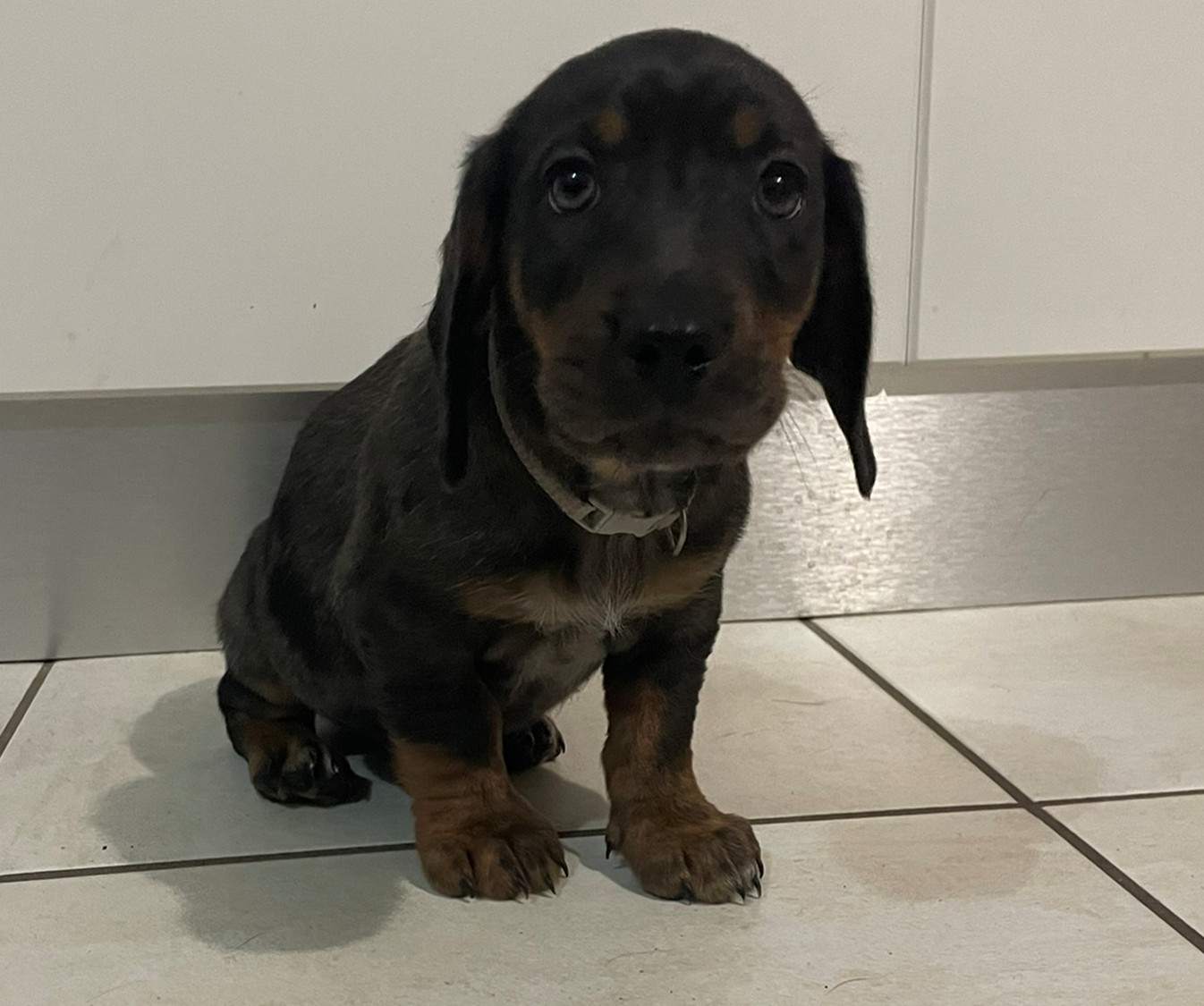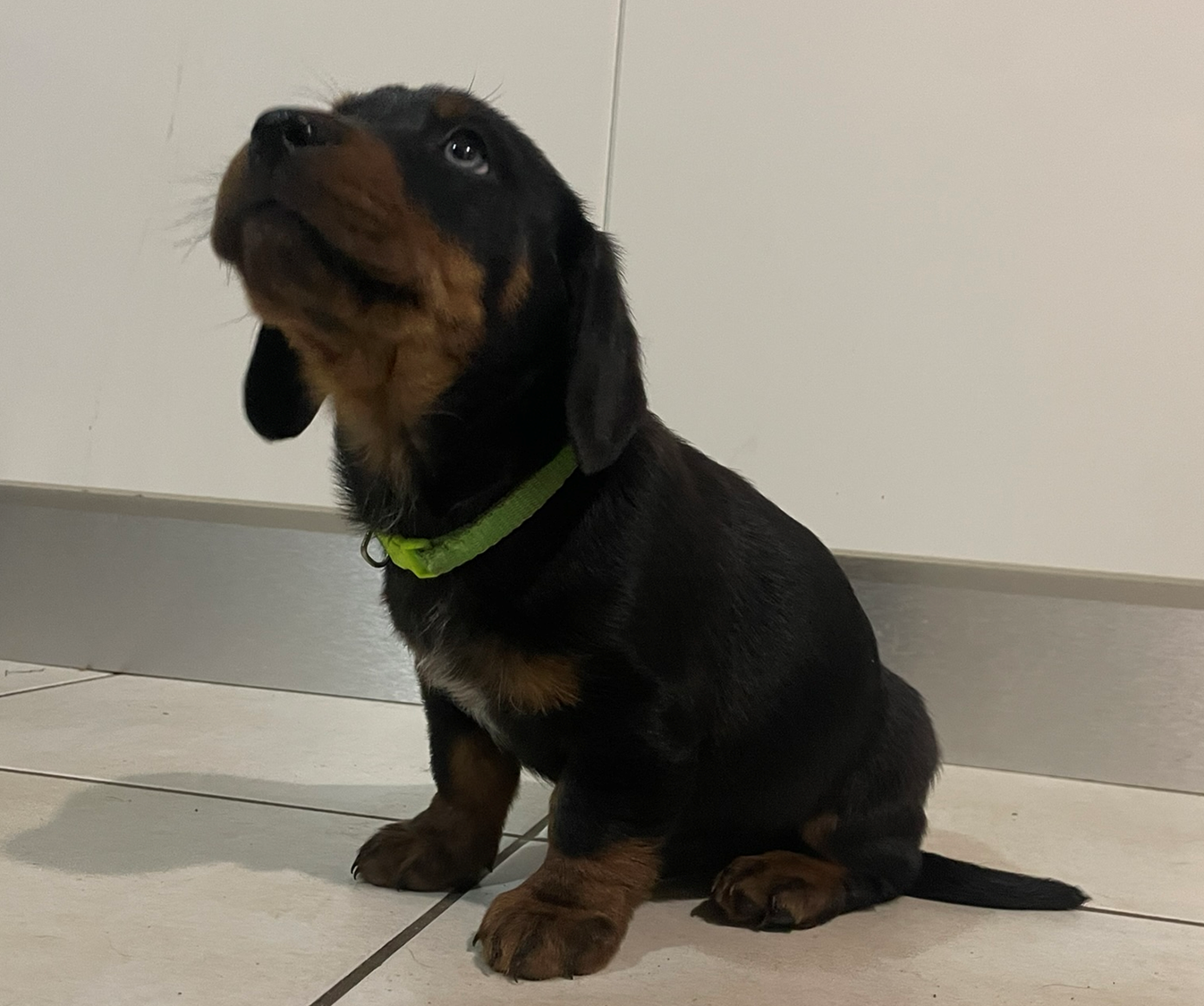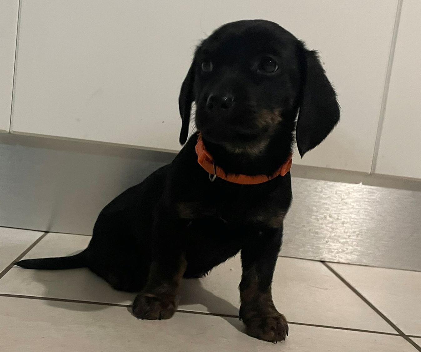 Our puppies don’t have names yet — each one is identified by the colour of its collar. Choose the little face (and colour) that captures your heart!
