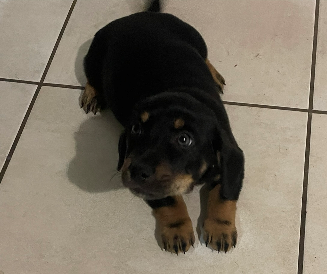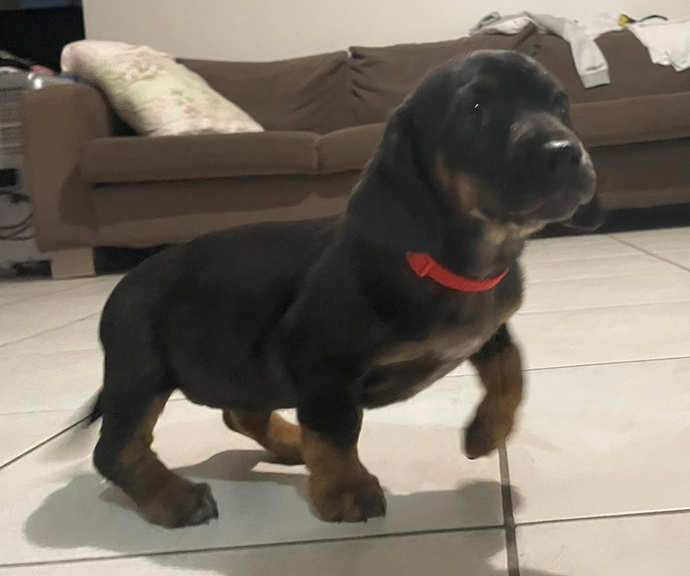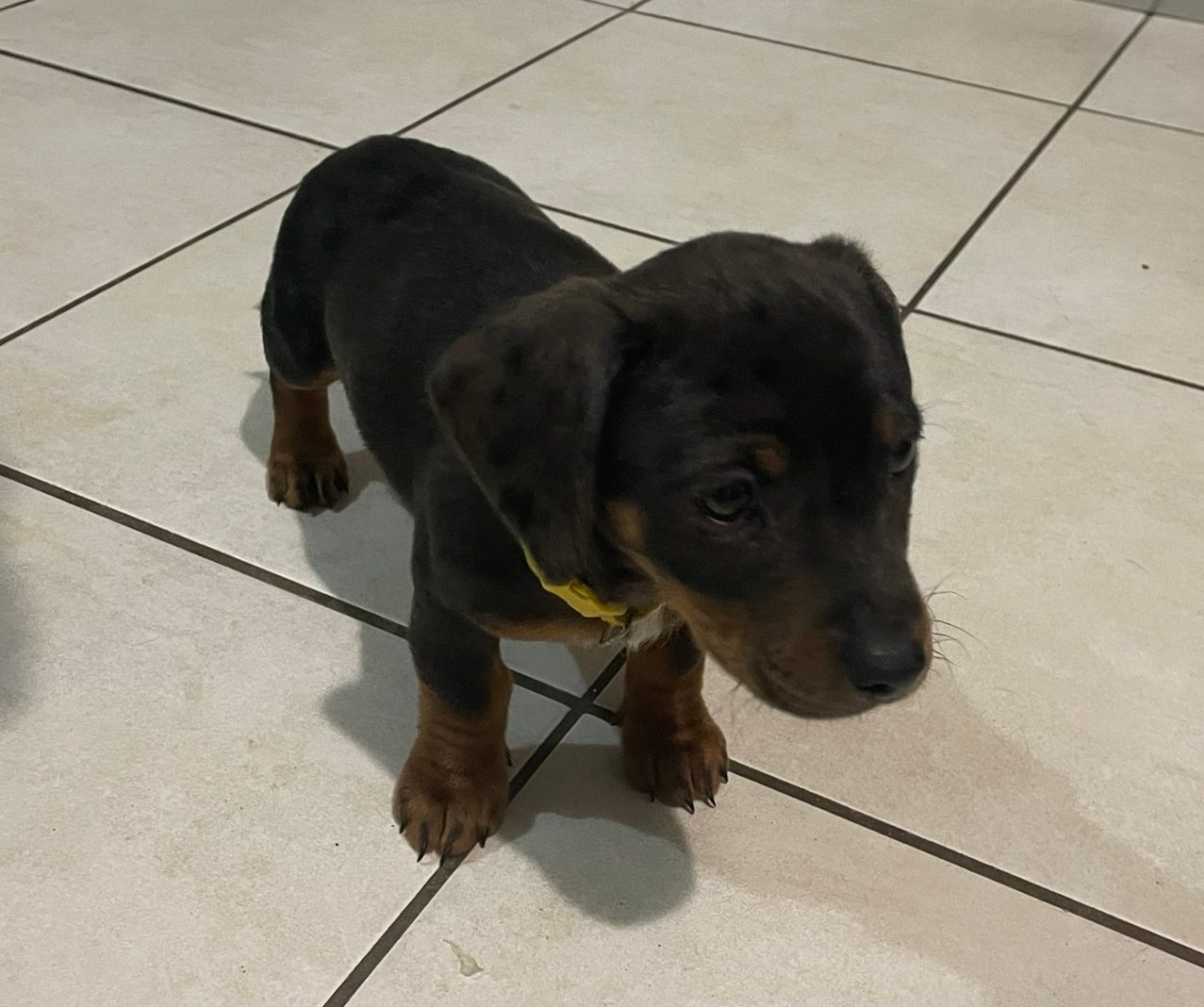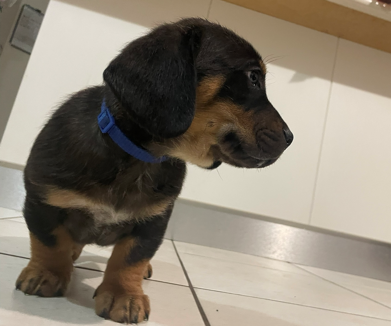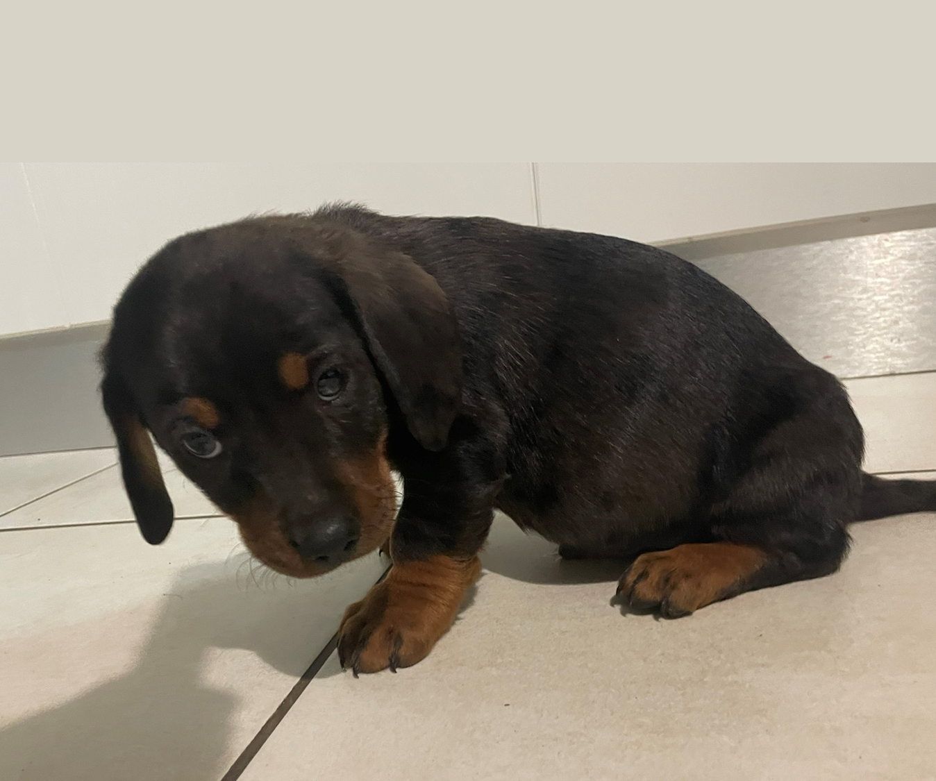 The Dachsweiler is a unique cross between a Dachshund and a Rottweiler, combining the loyalty and intelligence of a Rottweiler with the playful, curious nature of a Dachshund. They grow to medium size, are protective of their families, and make excellent companions for active households.